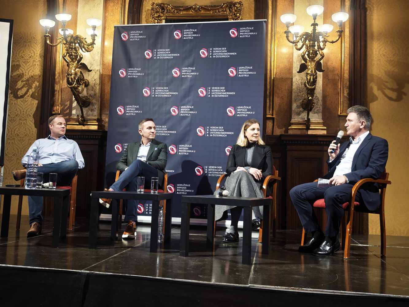 Teme su predstavili odabrani članovi Udruženja koji aktivno doprinose njegovom rastu i jačanju poslovne zajednice u Austriji. Milan Gajić, Denis Petrović, Tatjana Roknić i Peđa Ljubojević.